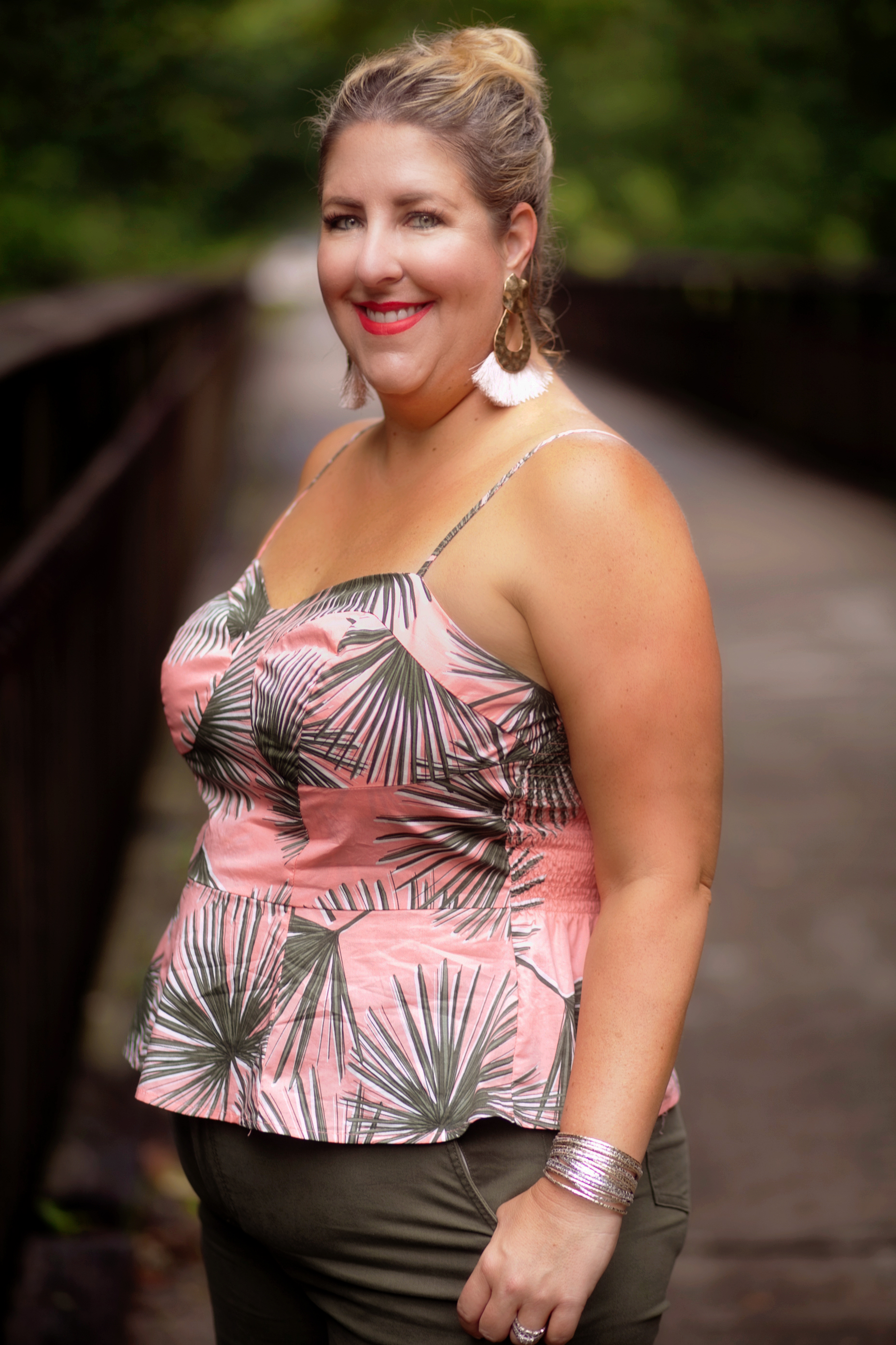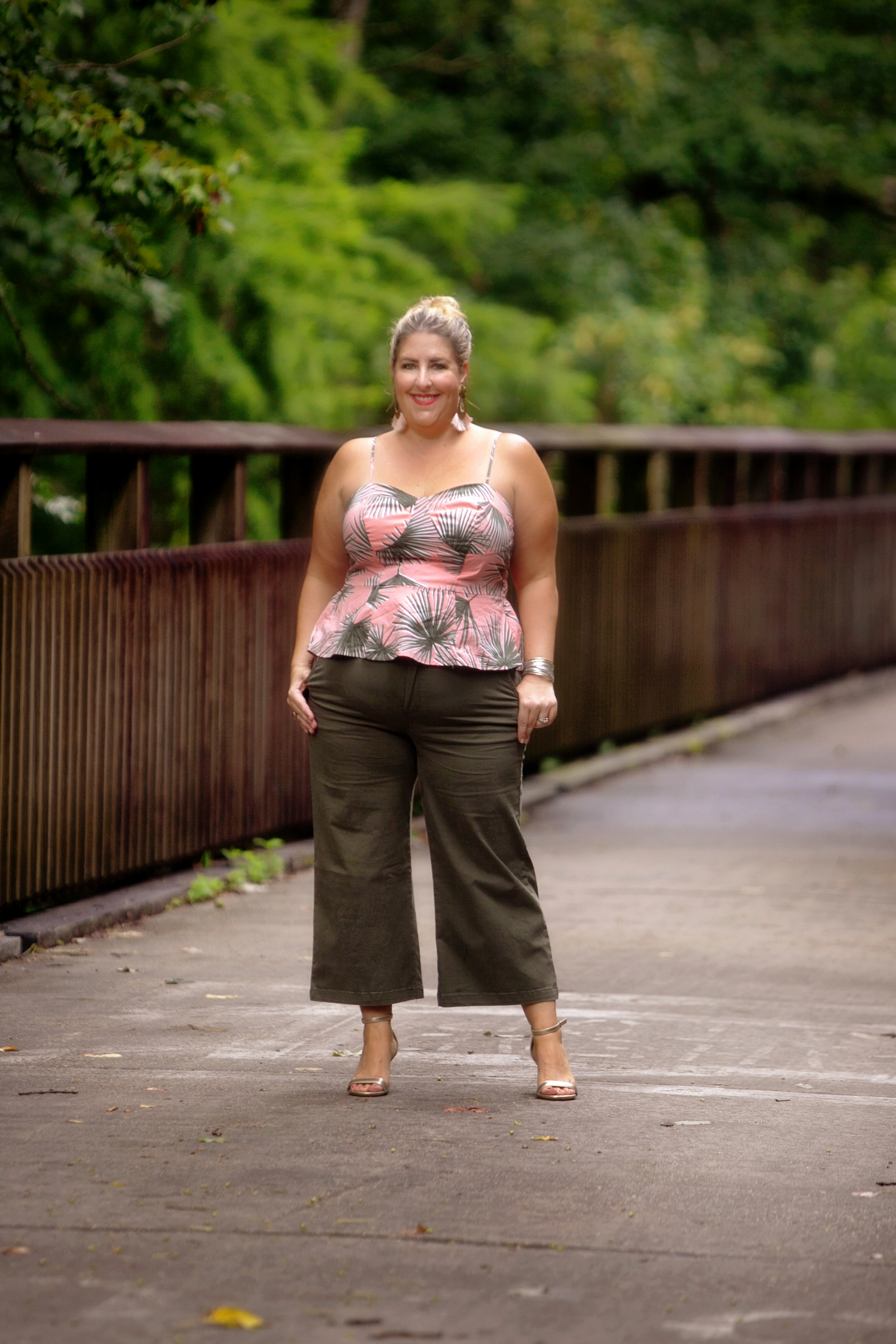 This outfit is from Target and the A New Day line. I had planned to share this mid summer but the days have gotten away from me. I love the palm prints for summer but this would work into fall with the addition of a vest or even a denim jacket. Be looking at everything you buy and see if it will work for fall. I am working on a post for next week about how to use your summer clothes as fall transition wear.